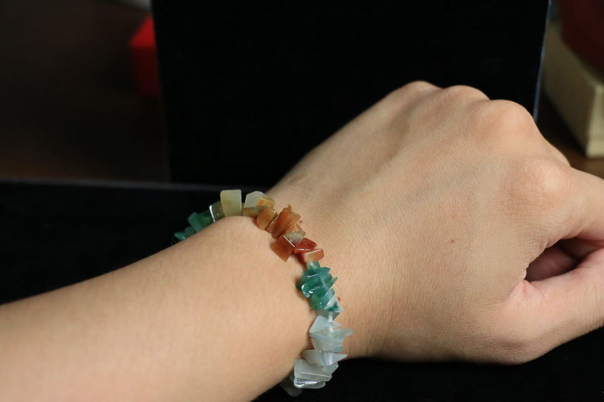 Harness the protective energy of 68 raw jade shards, forming a natural barrier against workplace challenges. White jade (Metal) deflects gossip, green jade (Wood) shields against energy drainers, and yellow jade (Earth) supports emotional stability. Designed for driven professionals and business owners, this bracelet is best worn on the left wrist during negotiations to strengthen your career presence with elemental balance.
